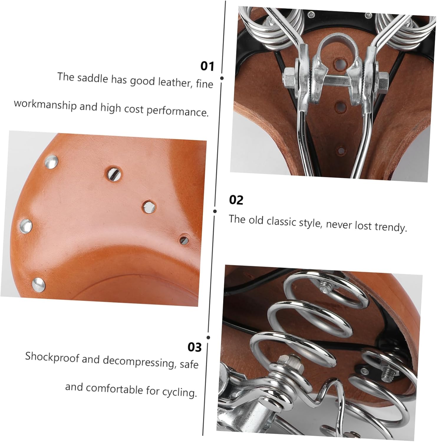 Package List 1 x bike saddle Features - Color: Dark Brown, Light Brown Shipped Randomly Comfort Bike Seat. - Material: Faux Cow Leather Bike Cushion. - Size: 28.00X22.00X11.00cm/11.00X8.65X4.32inch Bike Seat for Bicycling. - It is suitable for most bikes, such as road bikes, mountain bikes, racing and so on Shockproof Seat. - Faux leather bike saddle is excellent for . Simply install bike seat, change your bike into a new look Cycling Equipment. - Faux leather bike seat suitable for women and men. Provides a comfortable riding experience in all conditions. Easy to mount leather bike seat Bike Seat. - The ergonomic design with a deep center relief zone helps eliminate pressure on sensitive areas, making your riding Seat. - your mountain bike, road bike, cruiser bike with our beautifully crafted faux leather bike seat Road Bike Seat.Goods InformationRoad Bike Seat Whether you ride for leisure, or transport, our bike seat is sure to add style and comfort to cruises along the beach, through the neighborhood or out in wilderness.Comfort Bike Seat Personalize your bike with our brown faux leather bike saddle